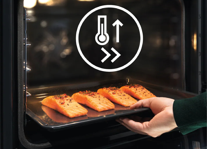 Система Even Cooking розподіляє тепло за всім обсягом духової шафи, забезпечуючи рівномірне приготування. Усе це без необхідності повертати блюдо. Ця технологія прискорює розігрівання духової шафи, економлячи як ваш час, так і електрику.