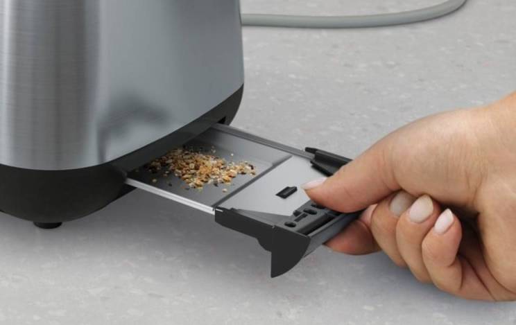 Тостер оснащений знімним піддоном для крихт, який легко очищати. Просто витягніть піддон після підсмажування і викиньте непотрібні крихти.