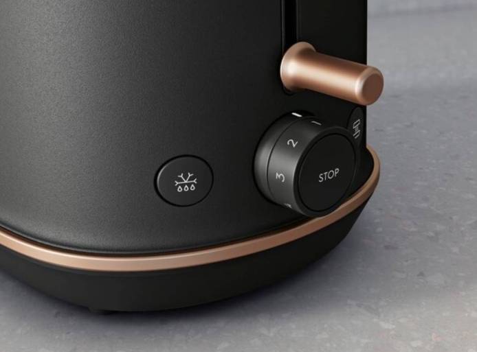 У тостера знайдеться ідеальне налаштування для будь-якого хліба. Виберіть один з семи варіантів підрум'янення — від нижчої потужності для м'яких хлібобулочних виробів, таких як булочки, до більш високої для жорсткіших хлібобулочних виробів, наприклад, чіабатти. Тости за вашим смаком